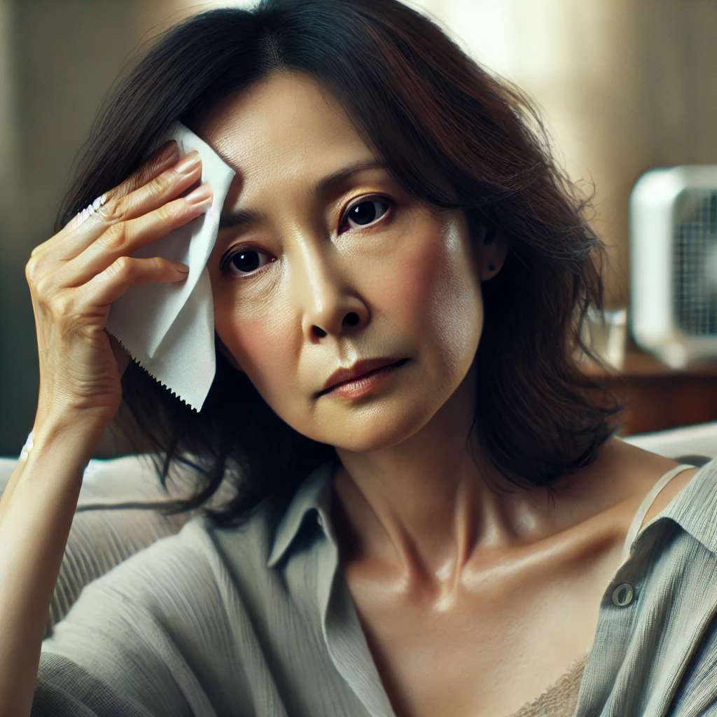 안면 홍조(갱년기 열감): 얼굴과 목이 갑자기 뜨거워지고 땀이 남